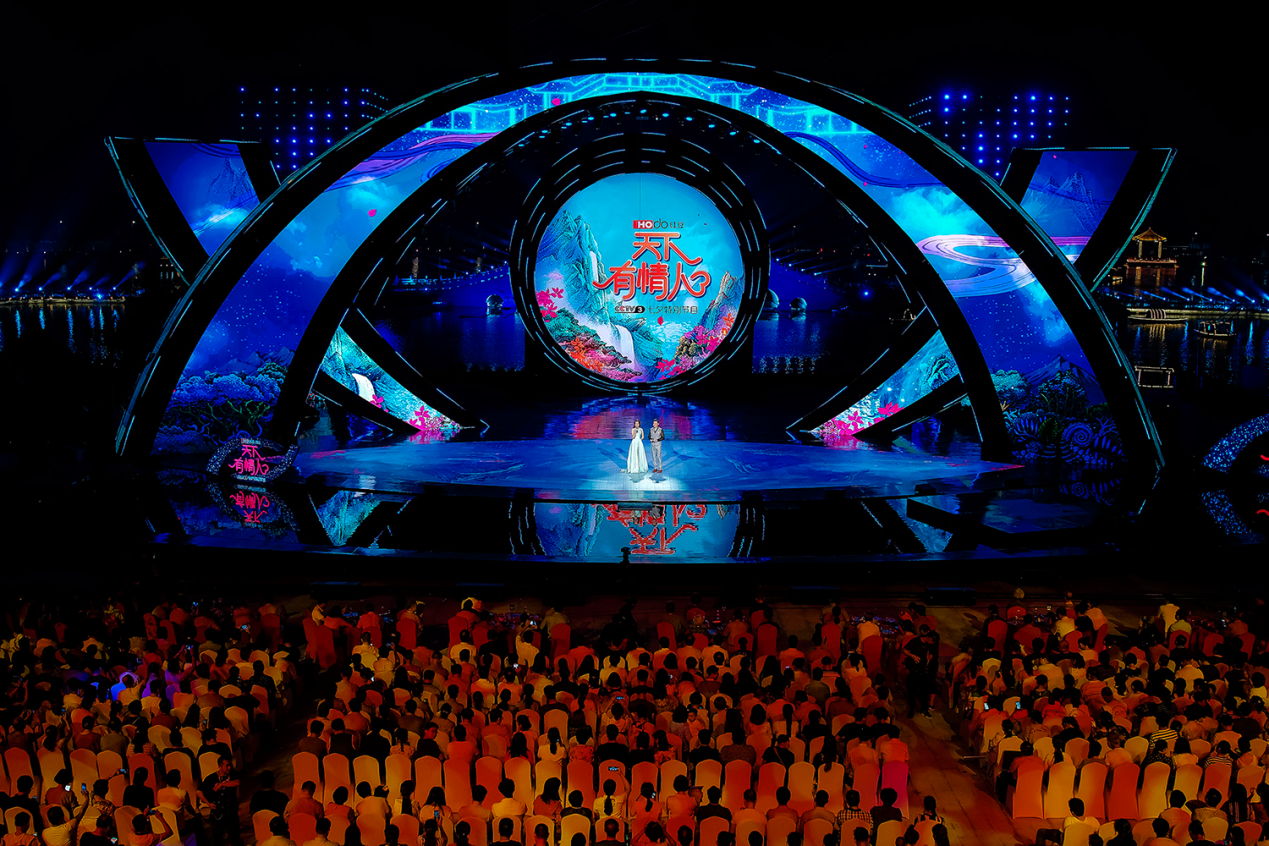 ? ? ? ? 在今年紅豆七夕節(jié)二十周年之際,這臺一貫保持高水準制作的晚會,不負眾望,再次走進陜西西咸新區(qū)昆明池和江西新余仙女湖,進行“雙城”實景錄制,將兩地秀美的自然風光納入晚會舞美設計當中,在歌曲、舞蹈、相聲等傳統(tǒng)晚會的框架外,輔以更多當下新鮮的視聽元素,包括影視化拍攝、歌舞劇表演、直播帶貨等,將整場晚會用短片串聯(lián)起來,以故事推動晚會進程,完美呈現(xiàn)“此時 醉良辰”、“此夕 最相思”、“此生 共相守”等頗具中國風的三大篇章內(nèi)容?,F(xiàn)場舞臺還將融入央視媒體線上發(fā)起的紅人舞動挑戰(zhàn),并以虛擬與現(xiàn)實的時空交錯,再現(xiàn)大唐盛世等。