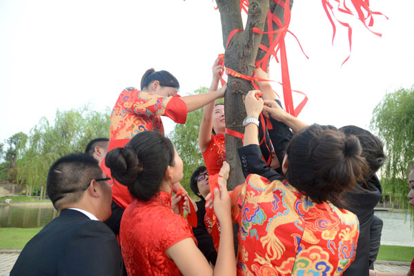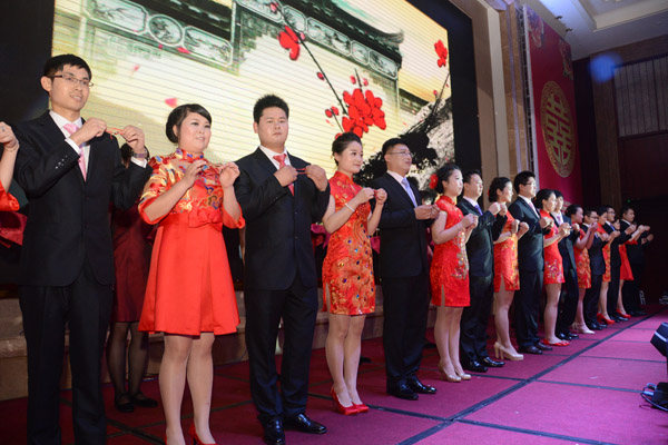 在紅豆,有著無數(shù)個這樣的故事等待我們挖掘。這些紅豆人因為紅豆情文化而扎根企業(yè),從而也吸引更多的人選擇在紅豆扎根。紅豆是有形的情,在紅豆,每個員工都會感受到家庭溫暖。此次紅豆樹下的婚禮,紅豆為紅豆員工打造美輪美奐的婚禮,精心安排各種獨具紅豆特色的環(huán)節(jié)。鵲橋相會、恩愛宣誓、紅豆樹下鎖同心、新人共放荷花燈,紅豆情緣等等系列戶外儀式,演繹著新人相識相戀相愛的浪漫故事。紅豆集團還為新人們送上紅豆緣定制首飾、定制旗袍、紅豆形象男裝等具有濃厚中國風的新婚賀禮,共邀新人的親朋好友參加這場最浪漫的新中式集體婚禮,以紅豆之名見證最美的愛情。