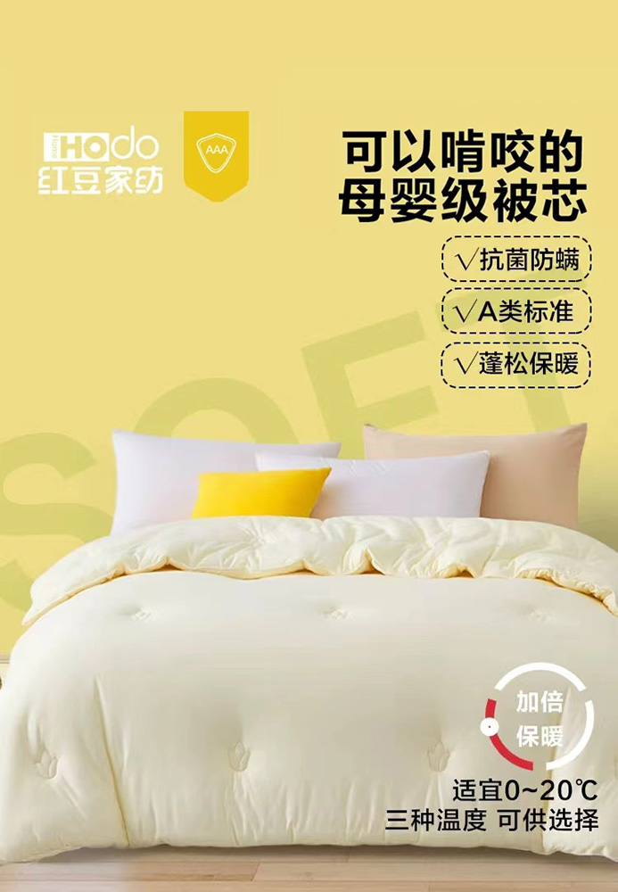 紅豆家紡有限公司是紅豆集團(tuán)子公司之一,自1998年成立以來,紅豆家紡不斷推進(jìn)品牌建設(shè),實(shí)現(xiàn)轉(zhuǎn)型升級,逐漸形成了HOdo紅豆家紡連鎖專賣、電子商務(wù)、家紡生產(chǎn)、小商品四大產(chǎn)業(yè)布局。多年來,紅豆家紡榮獲了“十大環(huán)保家紡品牌”、“中國最具流行魅力家用紡織品品牌”、“新銳時(shí)尚品牌”和“全國紡織實(shí)施卓越績效模式先進(jìn)企業(yè)”等榮譽(yù)。紅豆家紡始終堅(jiān)持“品質(zhì)至上”,集設(shè)計(jì)、生產(chǎn)、銷售于一體,以“親情、愛情、友情”為品牌的核心理念,積極打造“溫馨、經(jīng)典、時(shí)尚”的家紡產(chǎn)品。產(chǎn)品涵蓋家居產(chǎn)品全系列,被芯系列、套件系列、枕芯系列、婚慶系列、絨毯系列、床墊系列、夏涼系列等上千種產(chǎn)品,以滿足家居紡織品一站式的消費(fèi)方式。